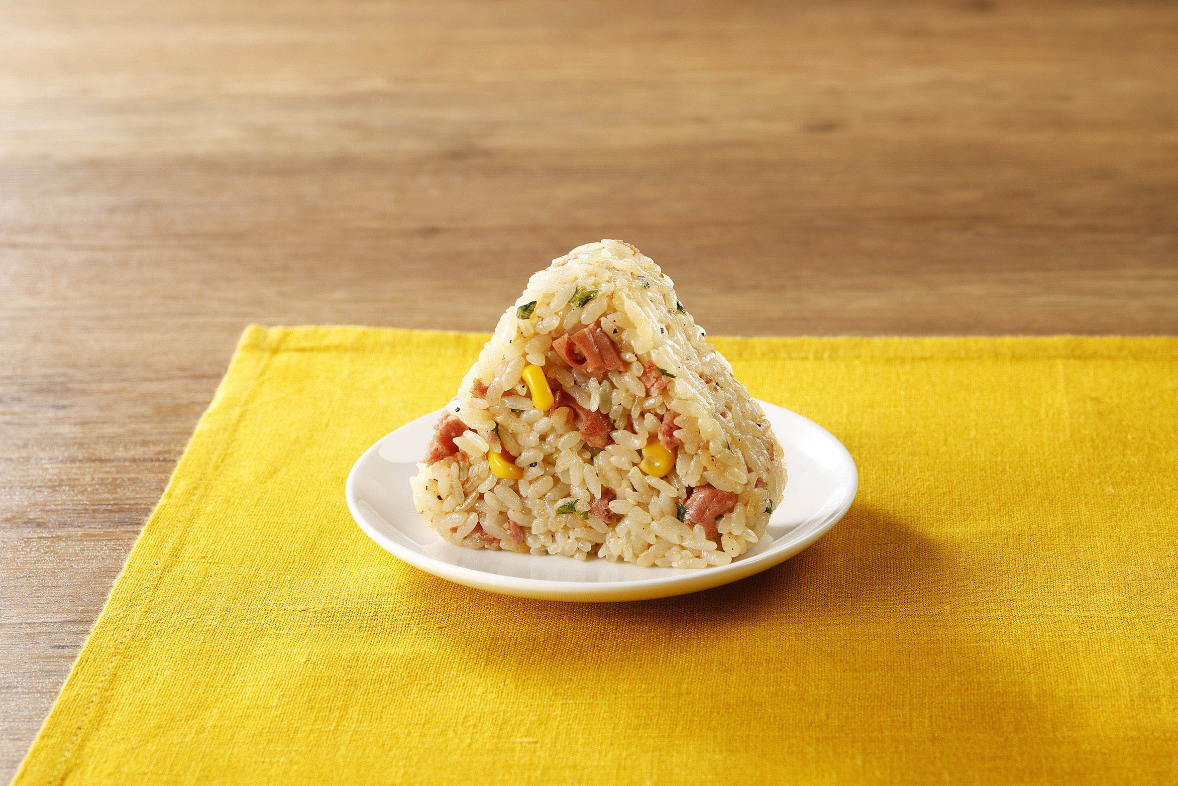 東北で愛されるご当地菓子「おやつカルパス」をほぐしておにぎりの具にしました。「おやつカルパス」ならではのペッパー風味が生きています。コーンを加えて食感まで楽しく仕上げました。