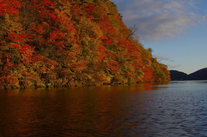 渓流のせせらぎや野鳥の鳴き声に耳を澄ましながら、紅葉のトンネルをくぐり抜けた後は、奥入瀬渓流の原点である十和田湖を目の前にシャンパンを提供します。外輪山の紅葉と朝陽が相まった、錦秋の十和田湖の景観も圧巻です。シャンパンはソムリエがセレクトした個性豊かな10種類の中から選ぶことができ、自分好みのシャンパンとともに贅沢なひと時を過ごすことができます。