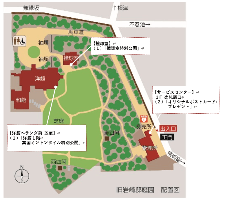ご来園前に旧岩崎邸庭園公式ホームページ、旧岩崎邸庭園公式X(旧Twitter)、