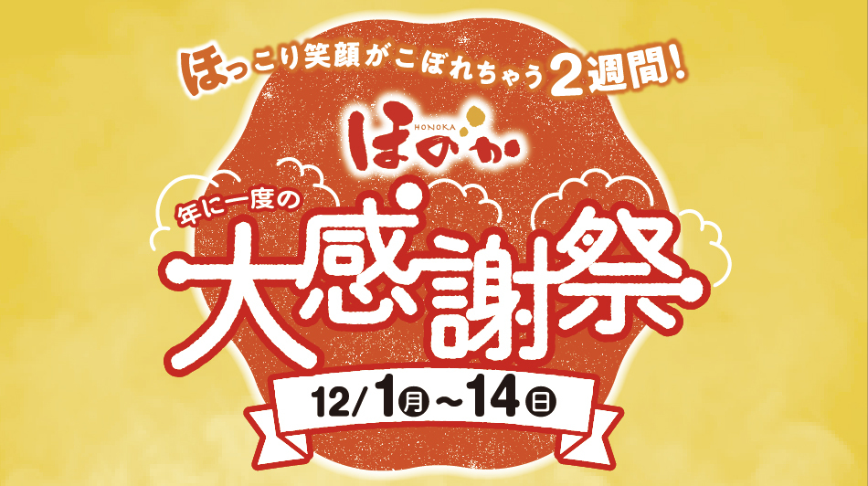温浴リゾート「ほのか」を運営する株式会社丸新岩寺は、日頃のご愛顧に感謝を込めて、2025年12月1日(月)~14日(日)の14日間、北海道内全店舗にて「年に一度の大感謝祭」を開催いたします。