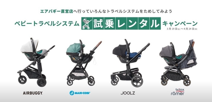 『ベビートラベルシステム試乗レンタルキャンペーン』を エアバギー直営店で3月19日~4月24日まで開催!