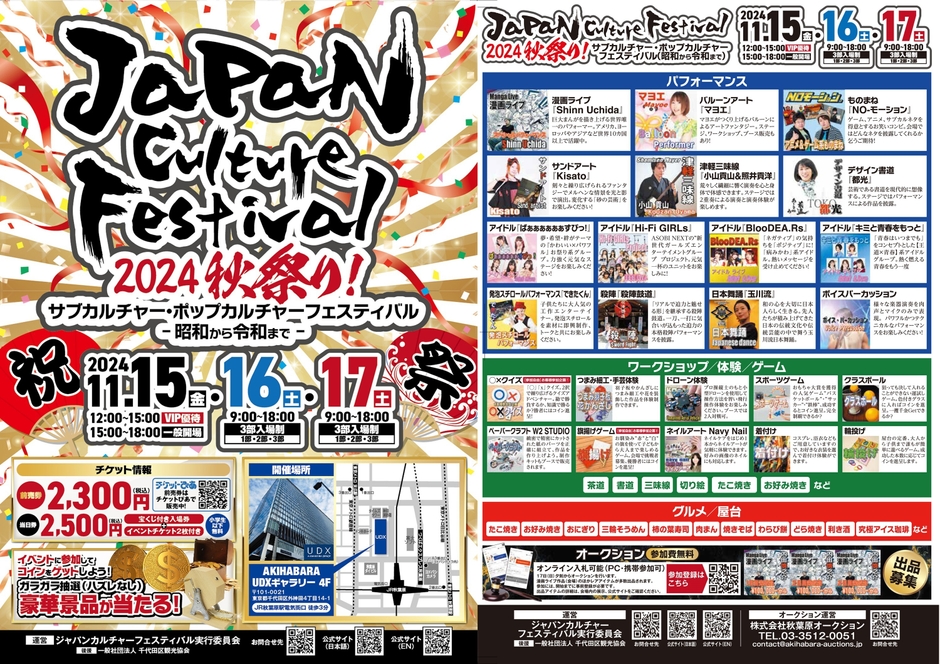 [第1回] ジャパン カルチャー フェスティバル 11月15日(金)~11月17日(日)の3日間 秋葉原UDXにて開催! 《前売チケット発売中:小学生以下入場無料》