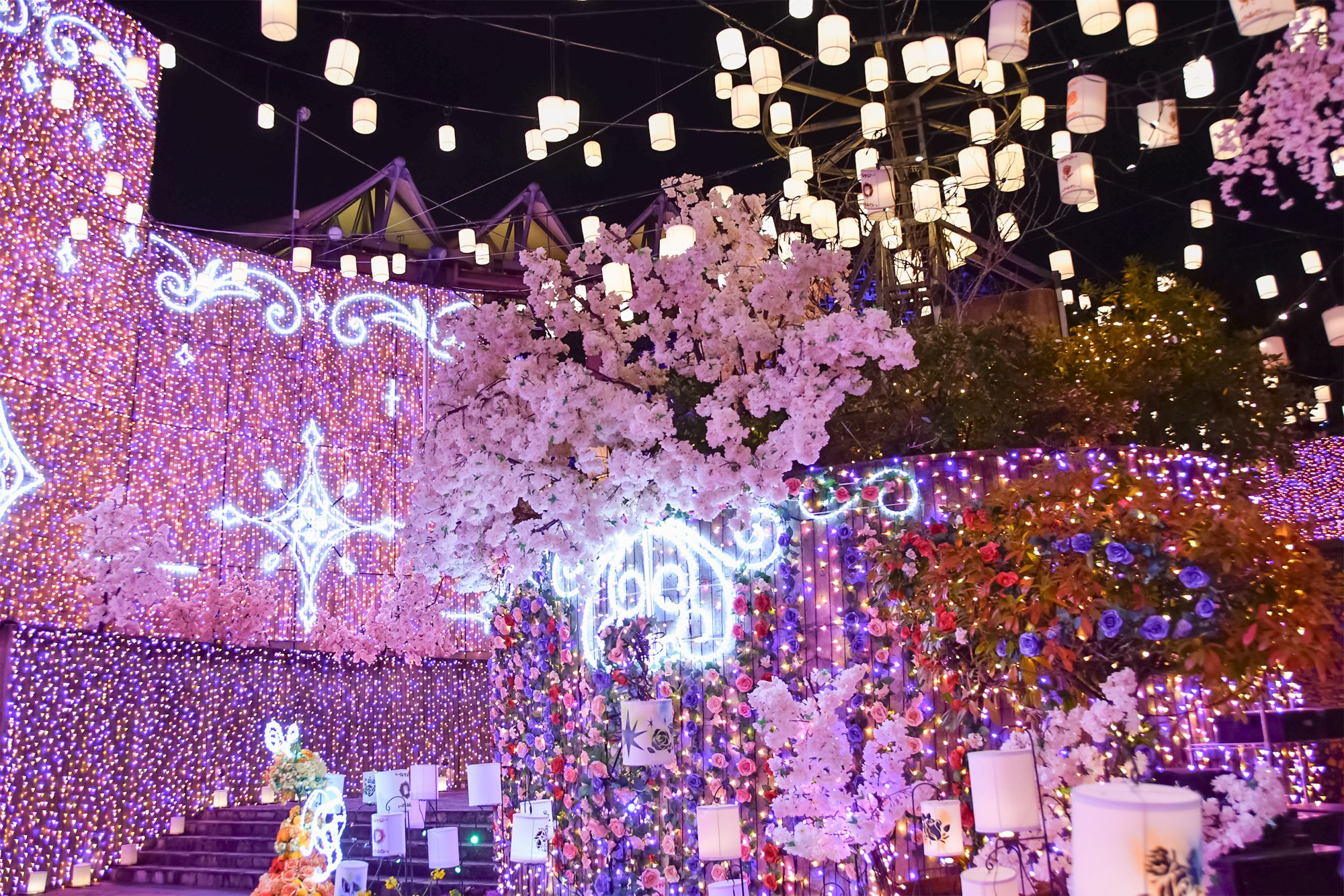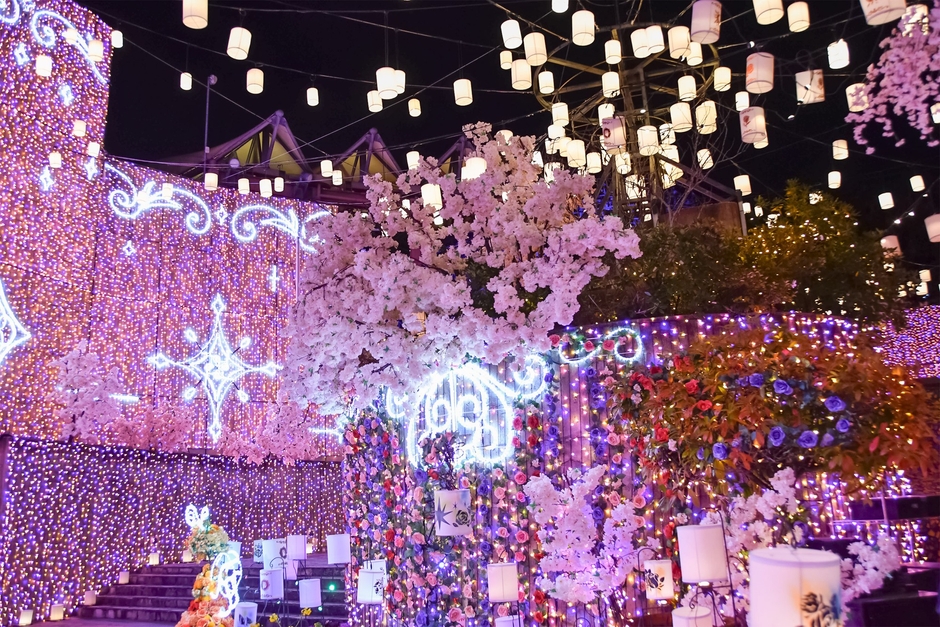 「光のランタン広場」が桜仕様にアップデートされ幻想的な光景が広がっています。