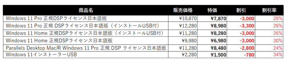 ② Windows 11 DSP版 (Pro/Home/Mac Parallels)|Amazon 新生活セール特価で提供
