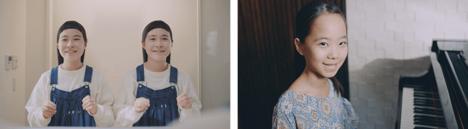 ● 「りんか&あんな」さん初披露のコンタクトデビュー姿でアクティブに遊ぶシーンや、今回CM初出演の「りっちゃん」さんが大人顔負けのピアノ演奏シーンを披露。
