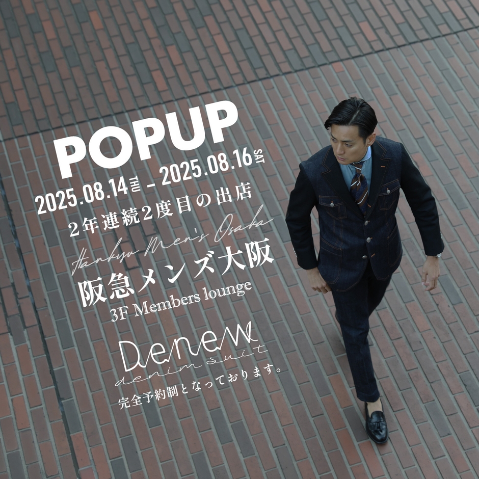 南青山のデニムスーツ専門店「Denew(デニュー)」(運営:株式会社ユーエフ、本社:東京都港区、代表取締役:森 雄治)は、2025年8月14日(木)~16日(土)の3日間阪急メンズ大阪にて関西ポップアップストアを開催いたします。