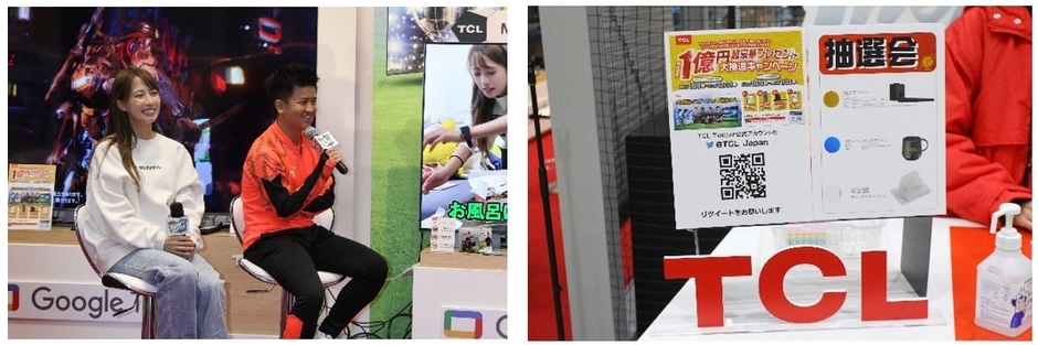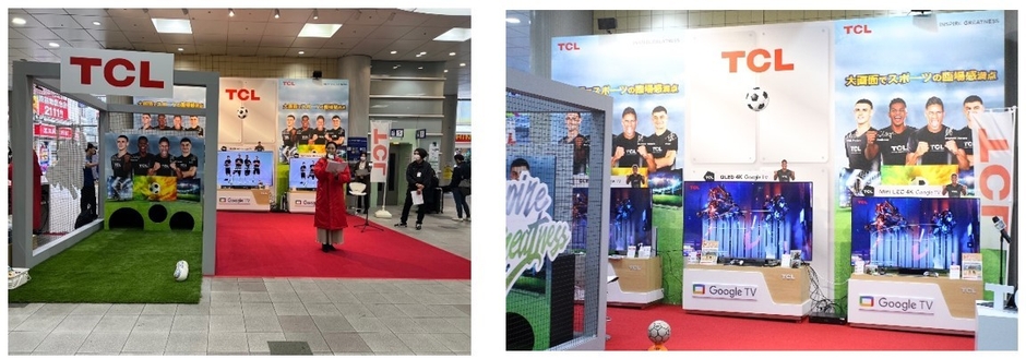 株式会社TCLジャパンエレクトロニクス(所在地:東京都中央区、代表取締役:張 濟鵬)は、2022年4K Google TV製品の<C735>・<C835>シリーズのさらなる魅力訴求を目指して「TCL 大型Google TV体験イベント」を11月26日(土)&27日(日)に渋谷マークシティ・マークイベントスクエアにて開催しました。会場に展示されているTV製品ではゲームやYouTubeなどの映像が常に流れており、会場を訪れた人や通りかかった人に映像美を間近で感じていただくことが出来ました。またTCLオリジナルスマホリングが景品となっているキックターゲットやサウンドバーが当たる抽選会など、様々な体験コンテンツを実施しました。