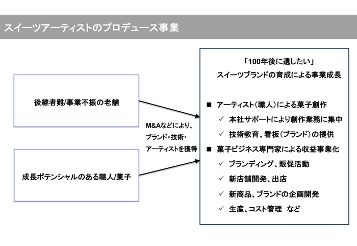 パパブブレやヴィヨンの経営で培われた菓子事業の経営基盤を提供することで、マーケティングや資材制作、販売や事務作業などからシェフを解放。