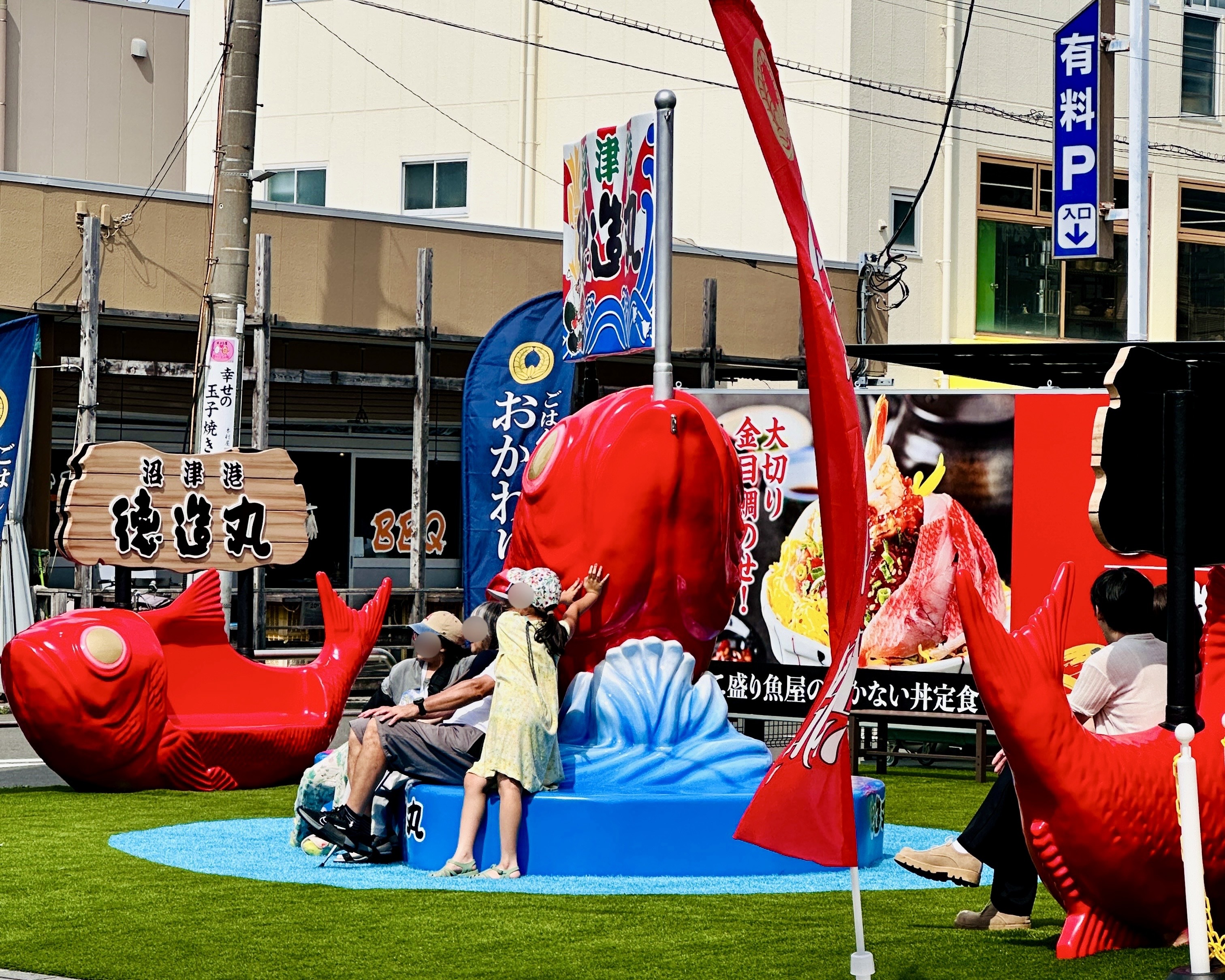 大型金目鯛オブジェやベンチを設置。写真撮影や休憩に最適な空間として、家族連れや観光客の憩いの場を提供。