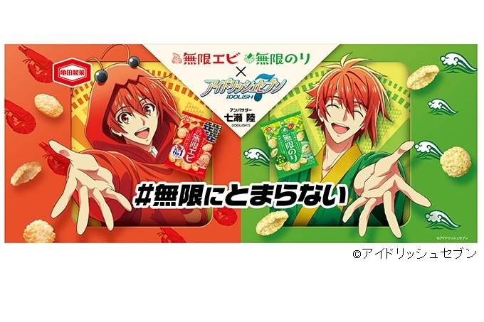 亀田製菓株式会社(本社:新潟県新潟市、代表取締役社長 COO:髙木 政紀)は、男性アイドルグループ「IDOLiSH7」の七瀬陸さんを『無限エビ』『無限のり』期間限定アンバサダーに迎えたコラボ企画を実施します。七瀬陸さんコラボグッズが当たるキャンペーンを6月19日(月)にスタート。また、6月24日(土)には七瀬陸さん出演のスペシャルTVCMを一夜限りで放送します。