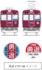 「勇退1755」ヘッドマークの掲出と車内装飾を施し期間限定で運行します。