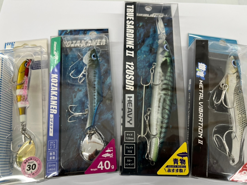有名メーカーの、ダイワやシマノの釣れるアイテムはもちろん、日々釣り場に行っているスタッフが考案したアズーロやブルーマーレのプライベートブランドが特に自慢。リーズナブルな価格ながら、本当に釣れるアイテムにこだわって企画開発をしています。