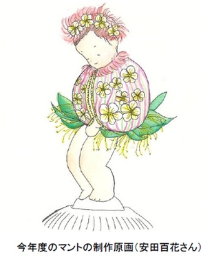 今年のマントは神戸芸術工科大学の学生が「チングルマ」をテーマにデザインしました。全19作品の応募の中から一般のお客様による人気投票を実施し、その結果選ばれた安田百花さんの作品を制作いただくことになりました。安田さんの作品が選ばれるのは昨年に引き続き2回目です。