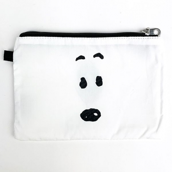 ホワイトカラーのバッグの中央に、スヌーピーのフェイスアップデザイン♪