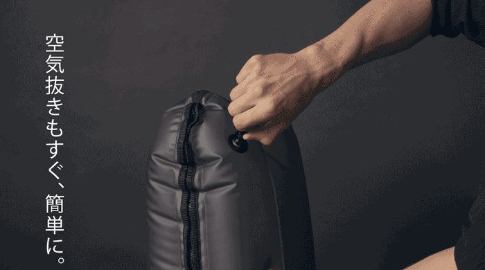 空気の入れ具合を調整することで、スリムなスタンドバッグから、プロが使用するような大型のスタッフバッグまで幅広く対応可能です。