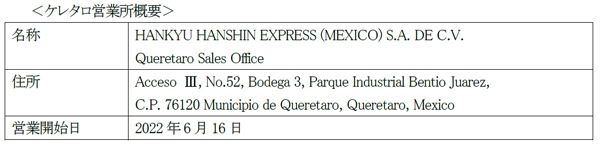 当社メキシコ法人であるHANKYU HANSHIN EXPRESS (MEXICO) S.A. DE C.V.は、メキシコ中央高原エリアのケレタロ市に新たに営業所を開設し、6月16日より営業を開始します。