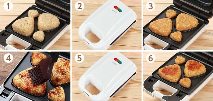 お子様でも食べやすく小さく4等分できる「よんぶんのホットサンド」や焼きおにぎり、ドーナツ、ワッフル等が手軽に焼けます。