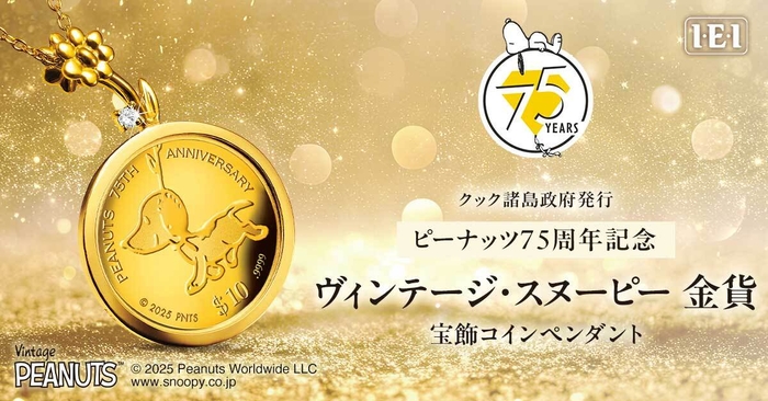 インペリアル・エンタープライズ株式会社(代表取締役社長:原 良郎、所在地:東京都荒川区)は、〈ピーナッツ75周年記念 ヴィンテージ・スヌーピー 金貨 宝飾コインペンダント〉を、I・E・I オリジナルショップにて販売いたします。