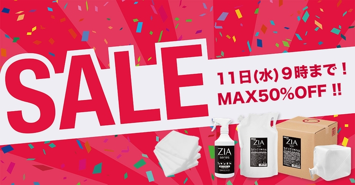空間除菌の季節となりましたので、大好評いただいております非電解次亜塩素酸水「ZIA」全ラインナップを大特価でご提供します!