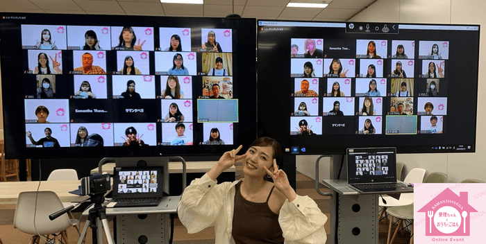 オリジナル壁紙も設定したオンラインイベントでは、事前に鈴木愛理さんからうかがっていた“当日食べたいかもしれない3種類の『おうちごはん』”『餃子』・『唐揚げ』・『うどん』の中から1つを参加者の皆さまにご用意いただき、鈴木愛理さんと一緒に『おうちごはん』を楽しむという、新しい形のつながるイベントを開催。