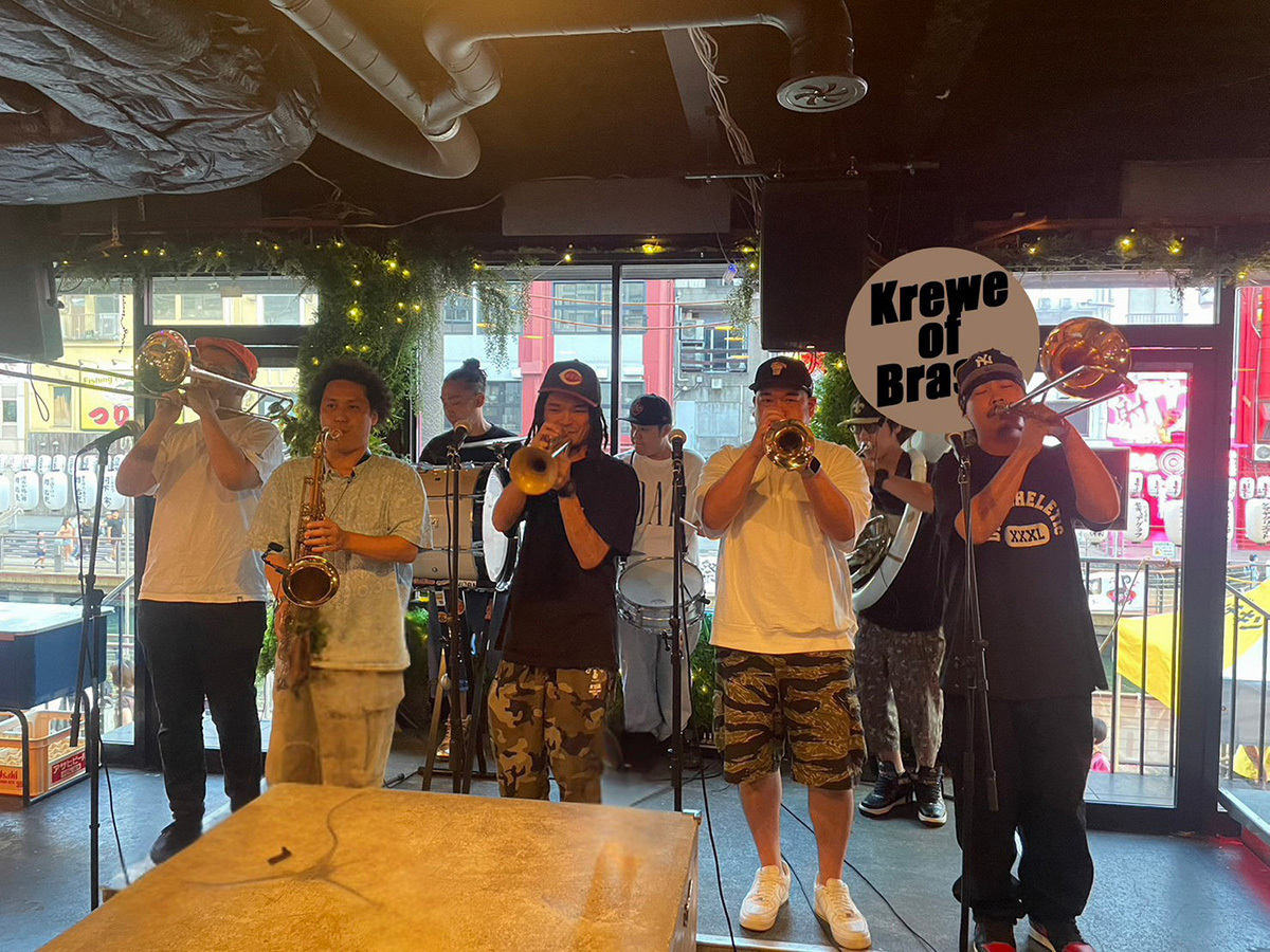 日本のブラスバンドシーンのパイオニアとストリートで活躍するフレッシュメンからなる、ニューオーリンズスタイルのブラスバンド。道頓堀「Giraffe Resort」内「The V」にて毎月、ブラスバンドイベントを開催中。