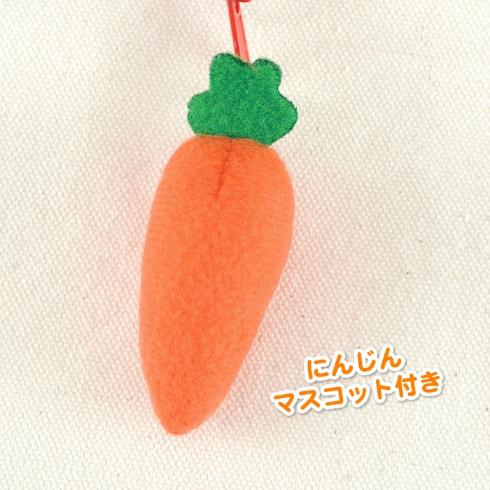 ファスナーについたにんじんのマスコットがかわいい口を開けて笑っている顔