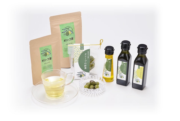 新しくなったのは、オリーブ新漬け、由良オリーブ100%のオリジナルオリーブオイル50g入と100g入、イタリアオイルとのブレンドオリーブオイルの4点です。