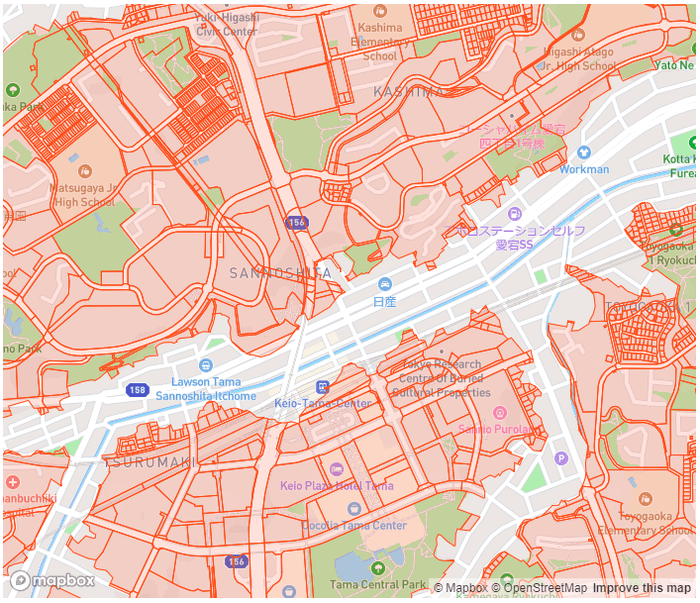 TerraMap APIで取得したポリゴンや統計データ、住所を使うことで、地図にポリゴンを描画したり、地図を使った統計データの見える化やエリアに特化した分析が実現できます。