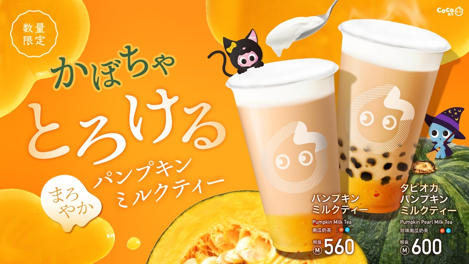 各国のCoCo都可で人気の「パンプキンミルクティー」「タピオカパンプキンミルクティー」が、ついに日本に上陸!