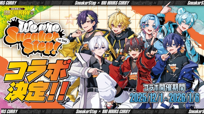 全国約50店舗展開しているカレー専門店「100時間カレー」を運営する株式会社アークス(本社:東京都豊島区、代表取締役:米田周平)は、2025年12月1日(月)~2026年1月6日(火)の期間、『すにすて-SneakerStep Prod.STPR MUSIC(以下「すにすて」)』とのコラボレーションキャンペーンを全国の100時間カレーで実施いたします。このコラボキャンペーンは、「すにすて」が2025年12月から1月にかけ大阪・名古屋・東京にて開催するグループ初のワンマンライブ開催を記念して展開する特別施策です。