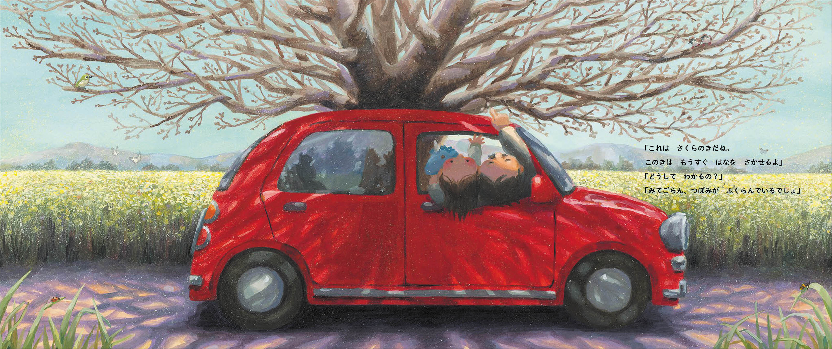 - はじめてのドライブ。目に映るものを次から次へとたずねるコットに、やさしく丁寧に答えてくれるお父さんのやさしさに心が温まります。