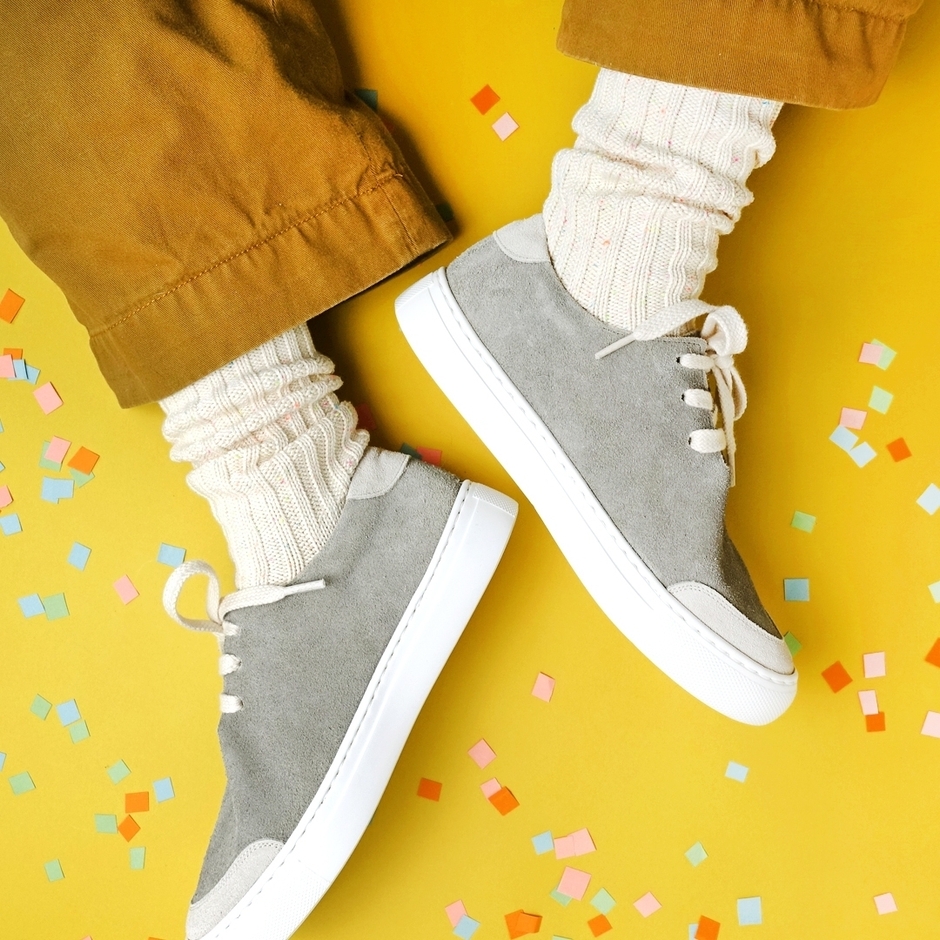 ふっくら空気を含んだ編み地と、ほどよい弾力が魅力的なPuffyに、「ネップ」というカラフルな粒状の節がある意匠糸をプラスしました。散りばめられたネップの色は、S.Laboのテーマ「くつ下を楽しむ」に合わせたカラフルなネオンカラーです。