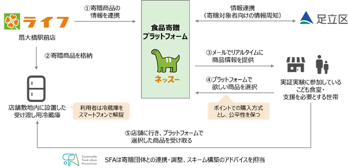 “おいしい”“ワクワク”“ハッピー”をお届けする株式会社ライフコーポレーションは、こどもの機会格差の解消を目指すネッスー株式会社および、一般社団法人サスティナブルフードチェーン協議会(以下SFA)と連携し実施をした、農産品(野菜・果物)・日配食品寄贈モデルの実証実験を終了いたしました。