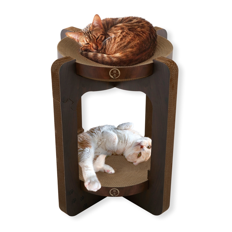 大人気のキャットタワー「バリバリボウルタワーシリーズ」から 「ダークブラウン」柄が新登場!2021年9月中旬新発売! ~寝てよし、研いでよし 夢の2段タワー~