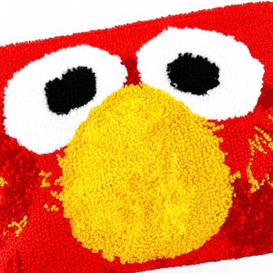 エルモがそのままポーチになったような、リアルな質感のサガラ刺繍。