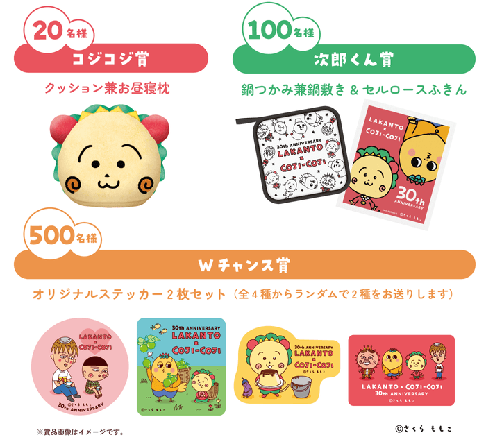 そんな30周年同士で、コラボキャンペーンとして【ラカントで人生甘くしちゃえばいいじゃない!】を実施いたします!「ラカントS」をはじめとする4商品(パッケージ別では8商品)についているキャンペーンシール中面の二次元コードを読み込むことで、キャンペーンシールの種類ごとに異なるオリジナルスマホ壁紙が必ずもらえます。さらに、購入レシートで応募することができるコジコジオリジナル賞品が抽選で620名様に当たるキャンペーンも実施しますので、こぞってご参加ください。