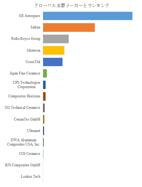 LP Informationのトップ企業研究センターによると、セラミックマトリックス複合材料の世界的な主要製造業者には、GE Aerospace、Safran、Rolls-Royce Group、Materion、CoorsTek、Japan Fine Ceramics、Composites Horizons、CPS Technologies Corporation、3M Technical Ceramics、CeramTec GmbHなどが含まれている。2024年、世界のトップ10企業は売上の観点から約70.0%の市場シェアを持っていた。