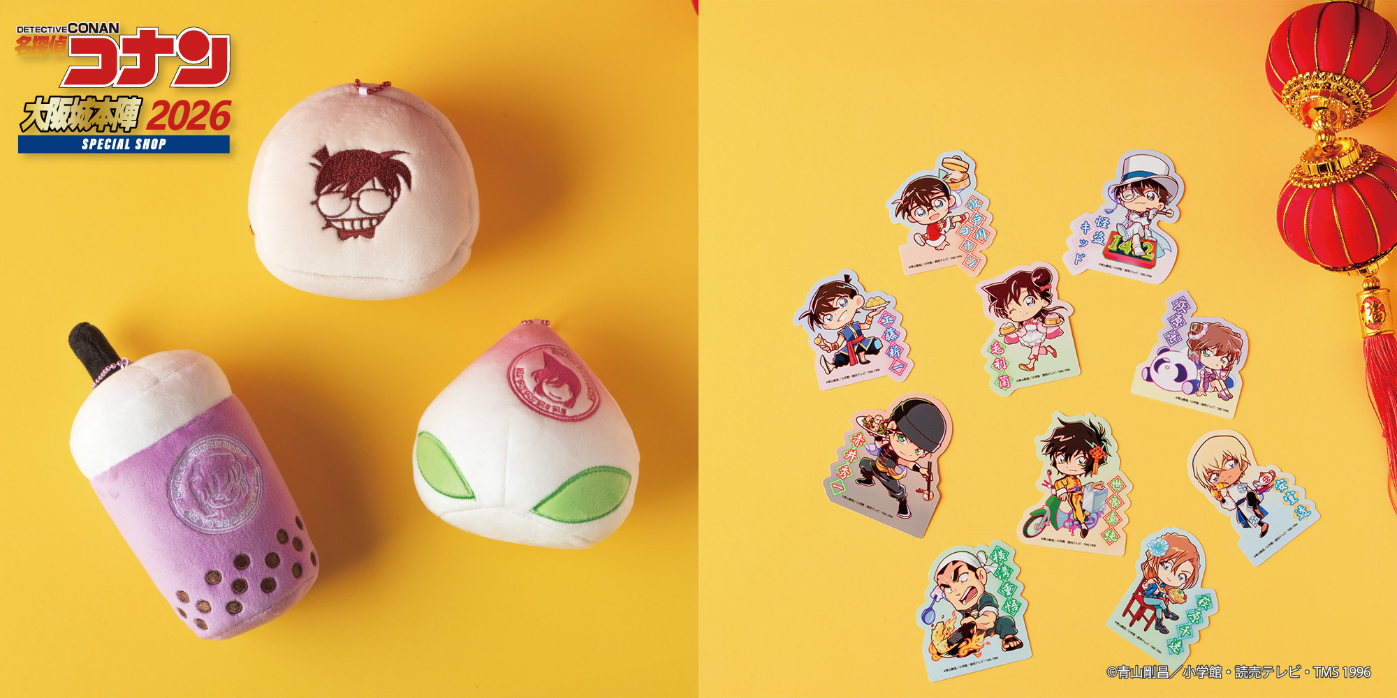 株式会社YTE(本社:大阪府大阪市)は、今年も「名探偵コナン 大阪城本陣 SPECIAL SHOP」を、MIRAIZA大阪城1Fの大阪城本陣にてオープンいたしました。店内には、今回のイベントビジュアル3種を使用した装飾がふんだんに施されており、「名探偵コナン」の世界観を存分にご体感いただける特別なショップとなっております。また、キャラクターパネルなど思わず写真を撮りたくなるフォトスポットも設置しており、「名探偵コナン」ファンの皆さまにお楽しみいただける空間をご用意しています。ぜひこの機会に、「名探偵コナン 大阪城本陣 SPECIAL SHOP」へご来場ください。