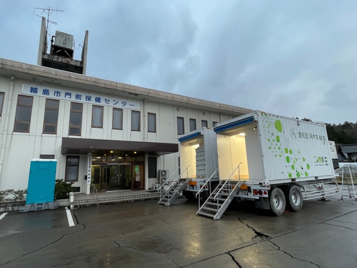 愛知医科大学病院ではコンテナ医療ユニット(Container Medical Unit)『CoMU(コミュー)』2台を導入しており、能登半島地震の被災地で医療ニーズに対応しました。元日に発生した地震の被害が明らかになるにつれ、切迫した医療ニーズが判明し、厚生労働省の依頼で1月7日に能登へ向かいました。可搬式のコンテナだからこその機動性ゆえに、3月5日に帰還するまでの間の約2か月間、被災地内3か所(穴水総合病院、珠洲市総合病院、輪島市門前保健センター)を移動し活動しました。