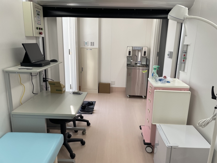医療コンテナ『CoMU』は、平時は発熱患者の診察にあたり新型コロナウイルス感染拡大を防ぐ砦となり、非常時には医療スタッフとともに発生地などに移動できます。また、イベントの救護所として医療ニーズに対応でき、昨年豊田市で開催されたフォーラムエイト・ラリージャパン2024でも救護所として設置し、医療物資を運ぶドローンと共同で、日本初の災害時における活用の実証実験が行われました。