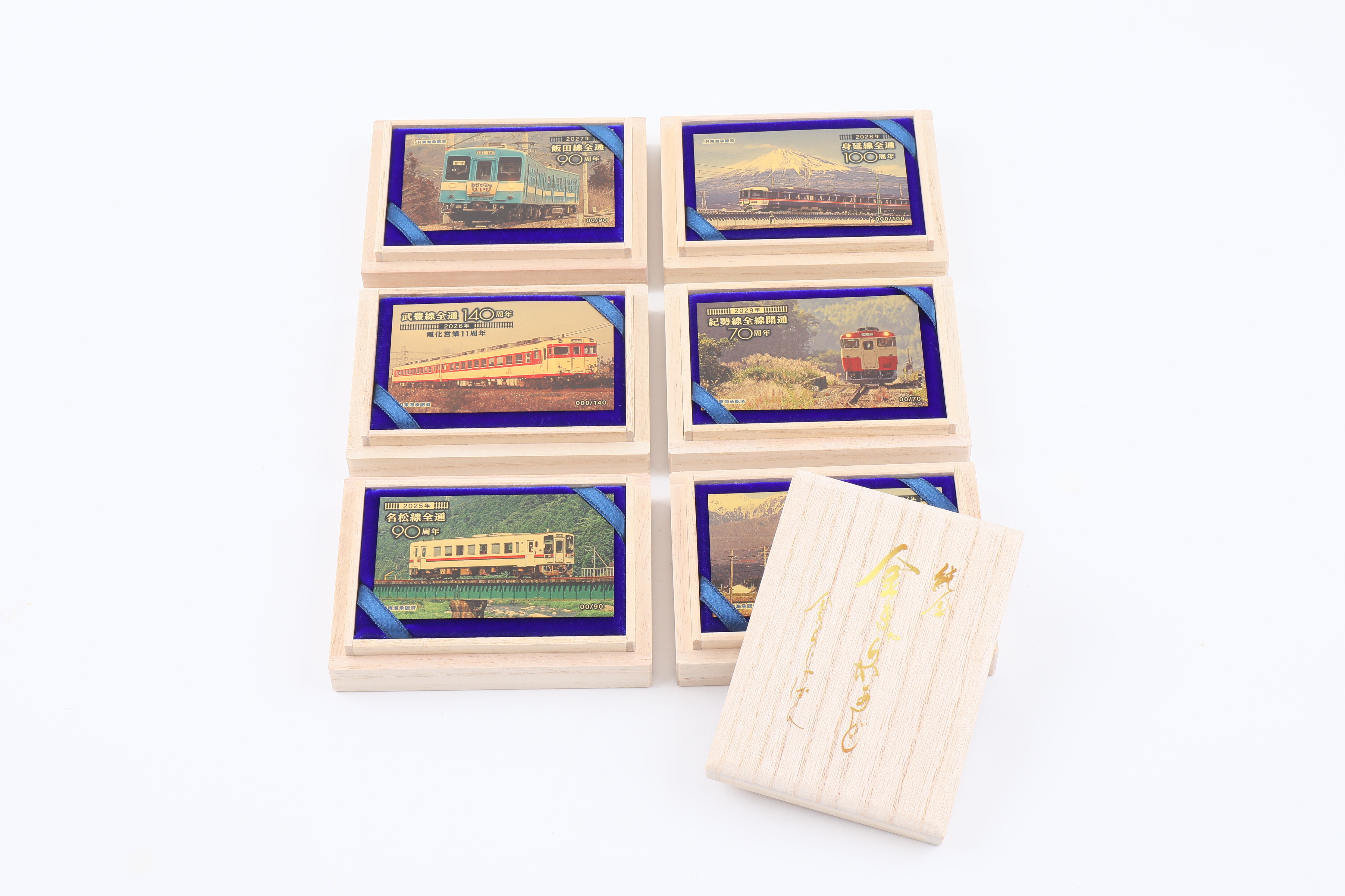 今回の純金カードは、各路線の2020年代周年記念を祝う特別企画として、長年地域に親しまれてきた代表的車両や走行風景などをデザインに取り入れています。