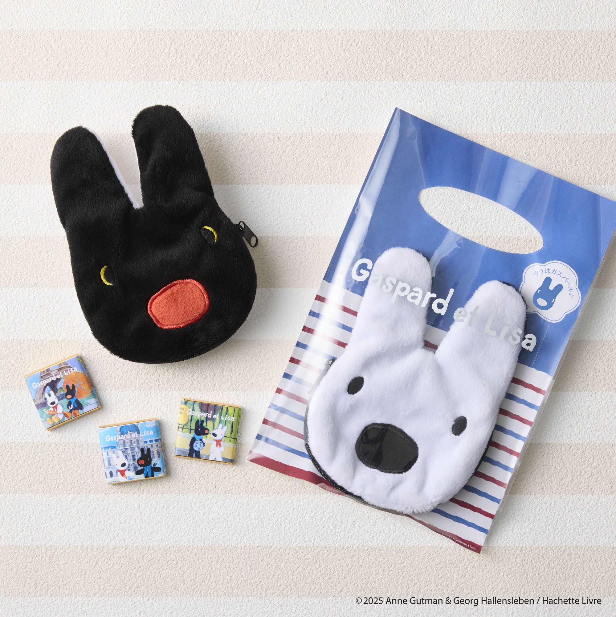 思わず抱きしめたくなる、リサとガスパールのお顔を両面にデザインしたポーチに、ショコラを3枚セットしました。