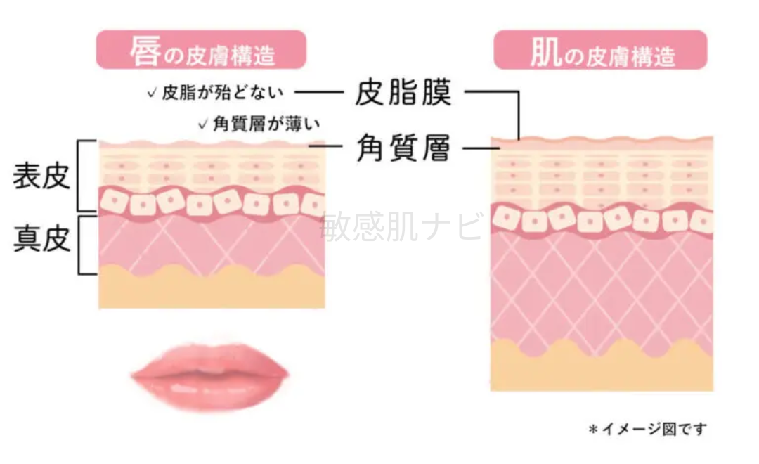 唇は角層が薄く皮脂腺もないため乾燥しやすく、肌よりデリケートです。