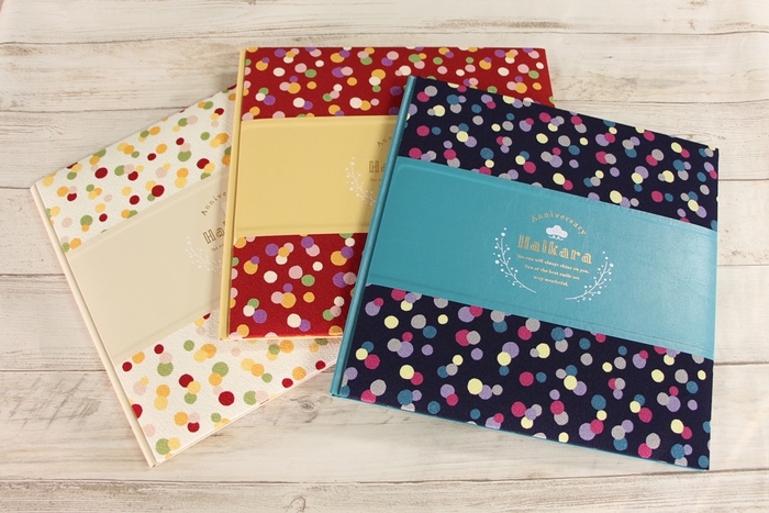 表紙タイプ「ハイカラ(茜、ラムネ、鳥の子)」、「晴日和(梅色、蒼色、松色)」、「ハピネス(赤、黒)」