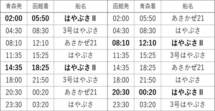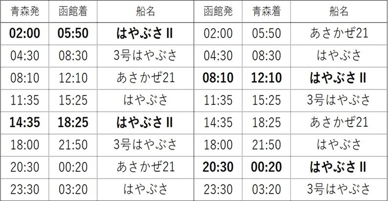 青森発初便:2023年4月5日(水)青森発01便(02:00)→函館着(05:50)