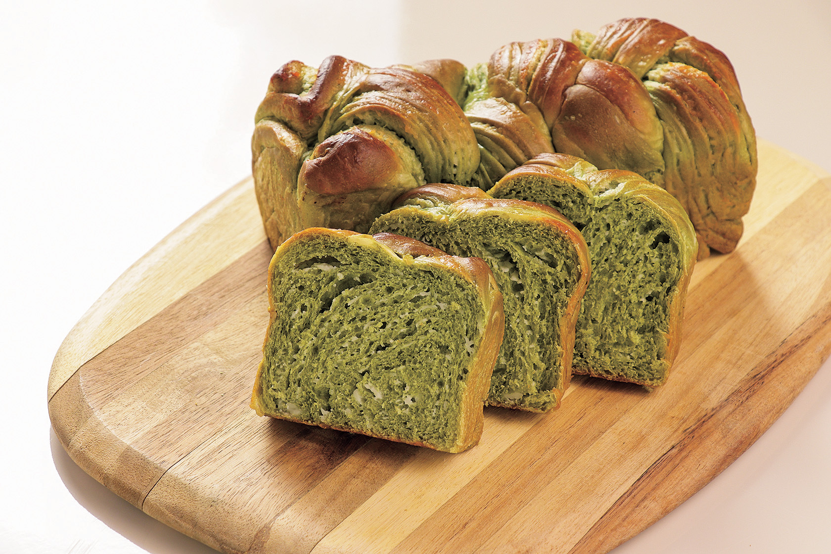定番ミルクフラワーパンに鹿児島の知覧茶を練り込みました。ミルクの濃厚な甘さのあとにお茶の風味と香りが余韻を残すおいしさ。
