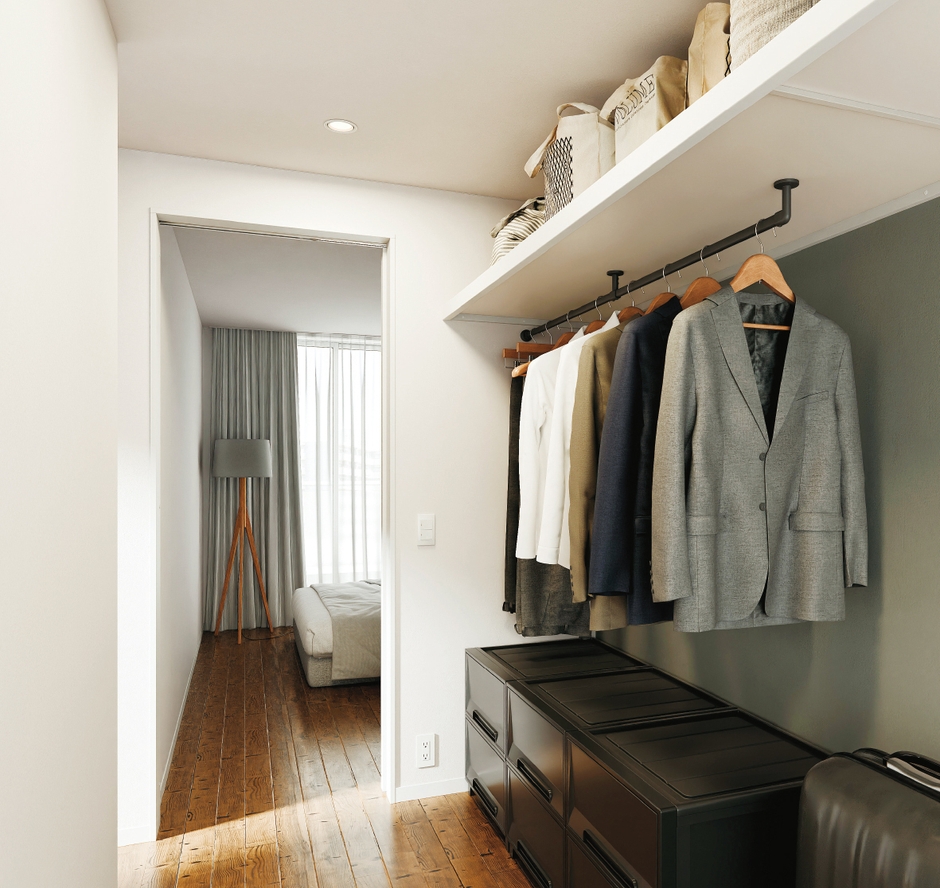 ハンギングバーH-3は、棚板にも取付けられるボルト止め対応のブラケットを採用。許容荷重30kg対応で洋服の多いクローゼットでも安心して設置可能です。カラーラインナップにはグレーを追加するなど、よりご提案していただきやすい品揃えになりました。