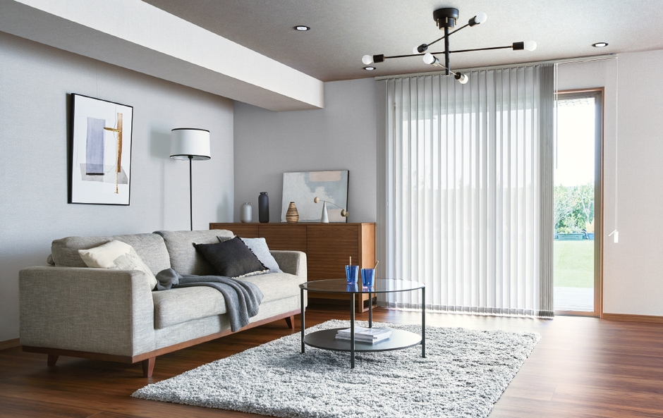 デュアルツインは、ドレープルーバーの間にレースルーバーを配置した構造で、ミラー機能を備えたレースが日中外からの視線を遮り、リビングで過ごす時間を快適にしてくれるバーチカルブラインドです。