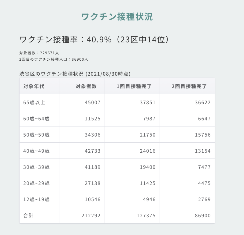 また、各区の接種状況について、進捗が掲載されているサイトも複数見受けられますが、更新の頻度が低く、古い情報のままとなっているケースもあります。