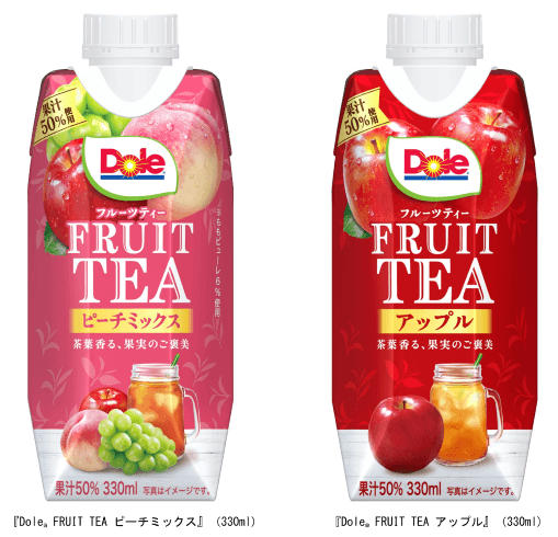 果実のおいしさにこだわった、Dole(R)がお届けするフルーツティー! 『Dole(R) FRUIT TEA ピーチミックス』 『Dole(R) FRUIT TEA アップル』(各330ml)